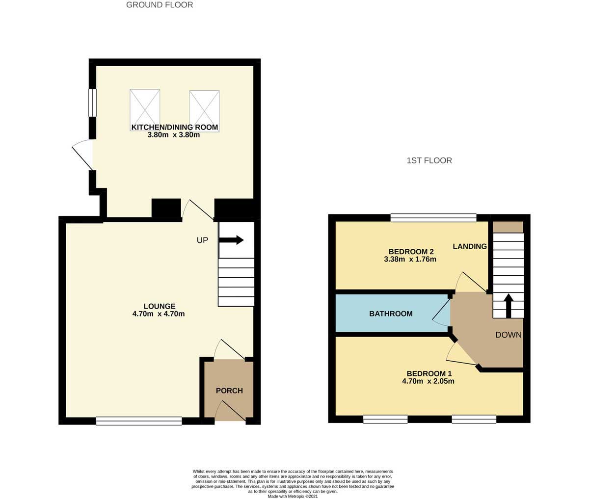 now it has a ground floor hall, living room, and kitchen/dining room, with two first floor bedrooms, while the bathroom’s also up at first-floor level.