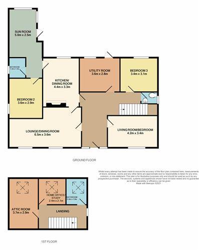 A wide and welcoming reception hall brings you through the easy flow of accommodation which extends to an open plan lounge/ dining room, a beautifully bright kitchen looking to the rear garden, a glazed sunroom, a utility, three bedrooms and two bathrooms all at the ground floor level. The first floor has a home office and an additional attic room suitable for a myriad of uses. The property sits perfectly on its site with drive in and plenty of parking space to the front as well as lawned landscaping. The rear garden is particularly private, is lawned and a complete sun trap.