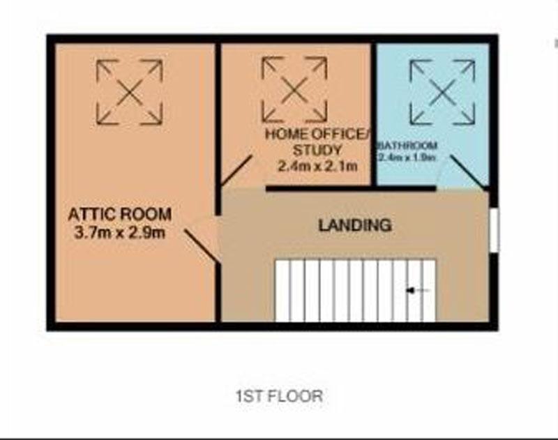 Fitted with three-piece coloured suite to include bath tub, wc and wash hand basin. Large vanity mirror accentuating the brightness and light combined with velux window. Fitted vanity press and finished with stained wood floor.
